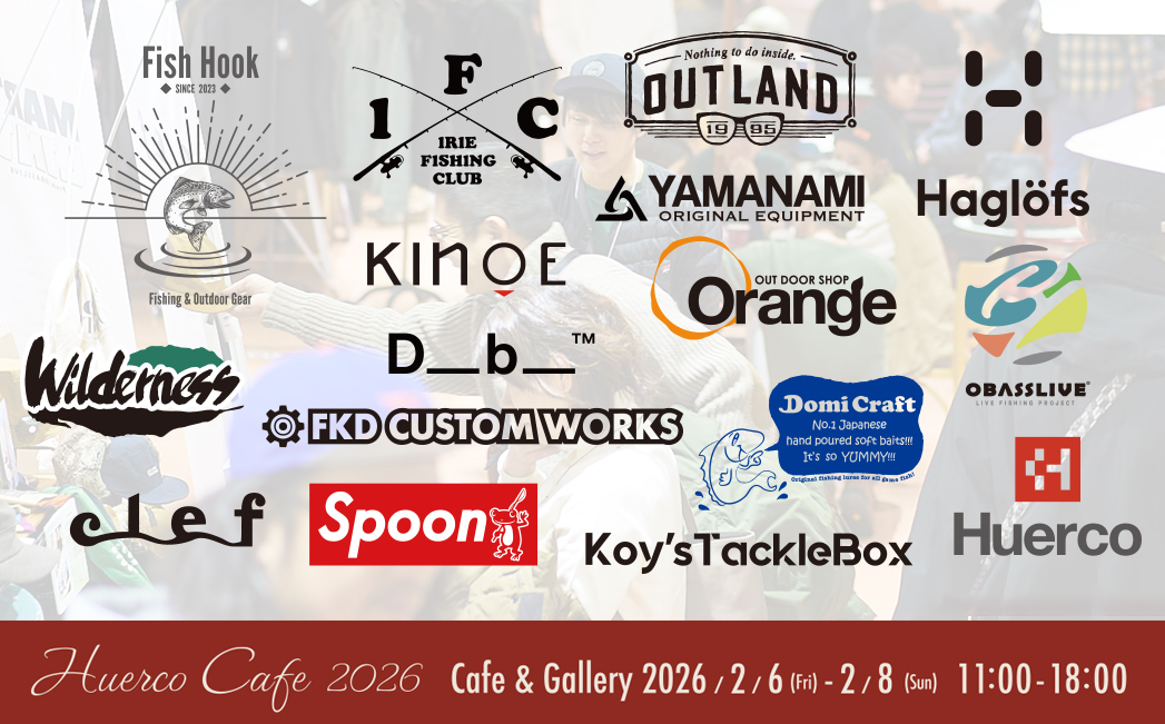 ・IRIE Fishing Club ・OUTLAND ・Wilderness ・FKD custom works ・OBASSLIVE ・Orange・蛙スプーン ・Kinoe ・clef ・Koy’s tacklebox ・D_b_ ・domicraft ・FishHook ・Haglofs ・山波商店