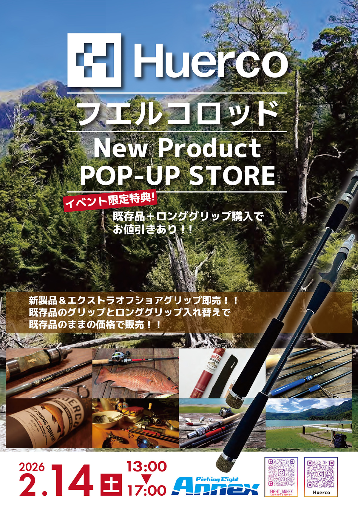 2月14日(土)、フィッシングエイト・アネックスさまにて、「フエルコロッドNew Product POP-UP STORE」を開催させていただきます。
