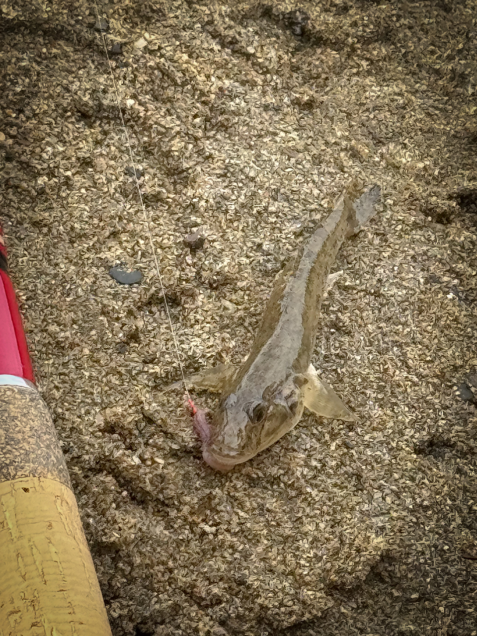 さっそく釣れました。初めて見るハゼ。体長10センチほどで、ヌルッとした体には透明感があり、なかなか可愛らしい顔をしています。